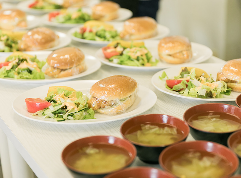 つくばみらい市、龍ヶ崎市、つくば市で展開しているゆっこらの各事業所をご利用する皆様に栄養バランスの取れた食事を提供しています。ともだち村で作られた給食は軽トラックの保冷車を使って、毎日クックチル方式で配送しています。